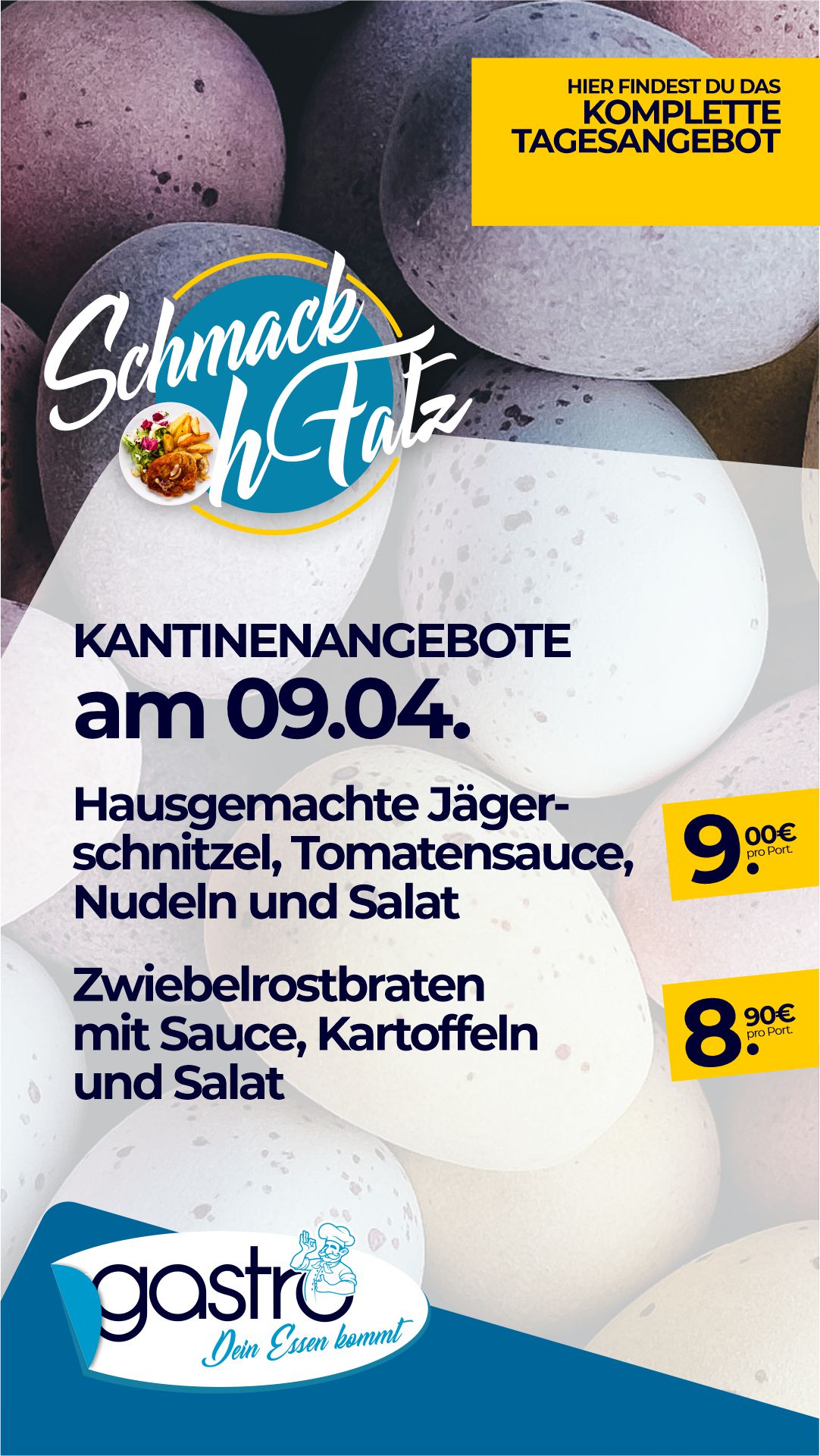 | Hausg. Schweineschnitzel verschiedene Variationen (5 Min. Wartezeit) | 8,40 € |