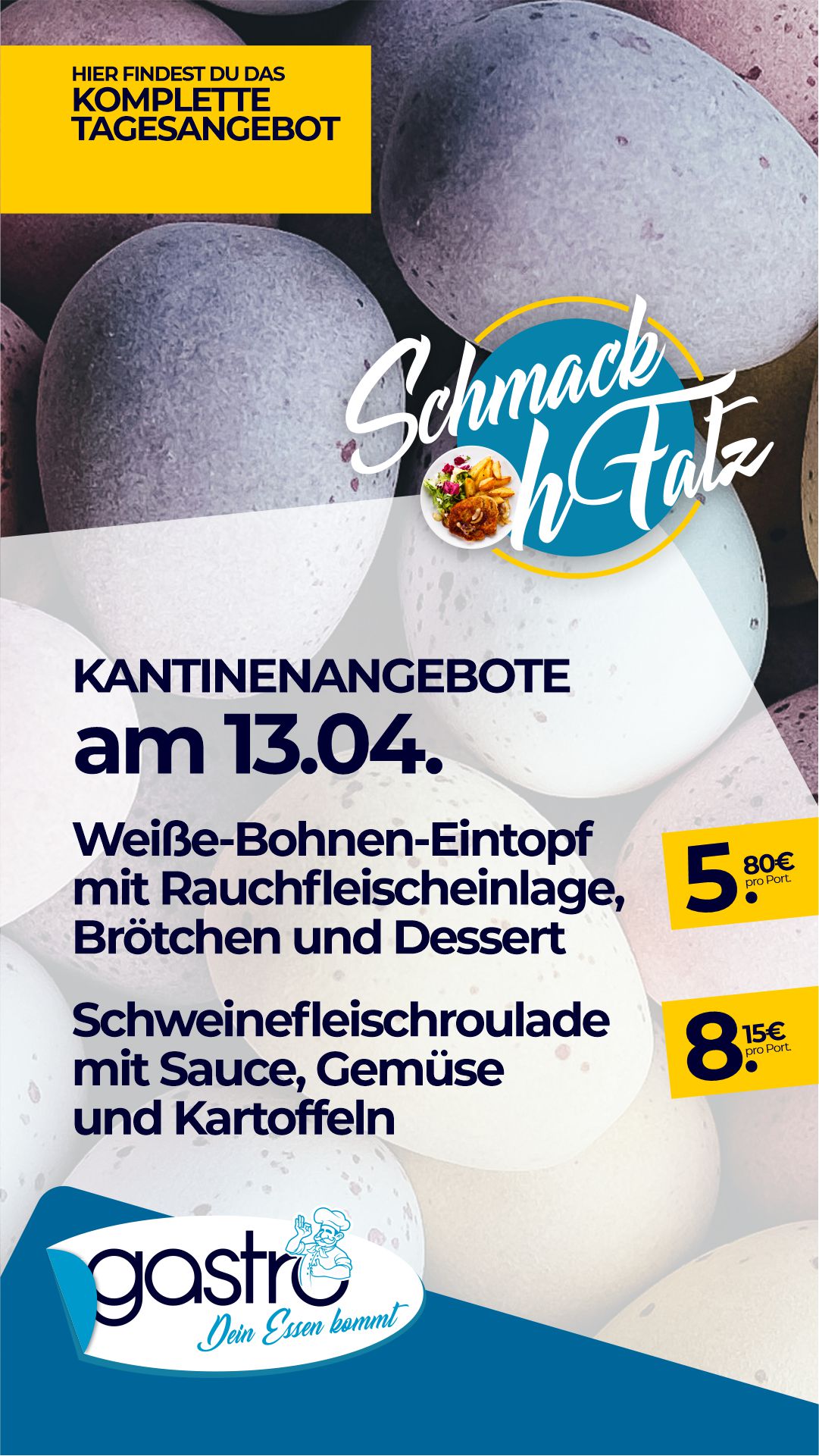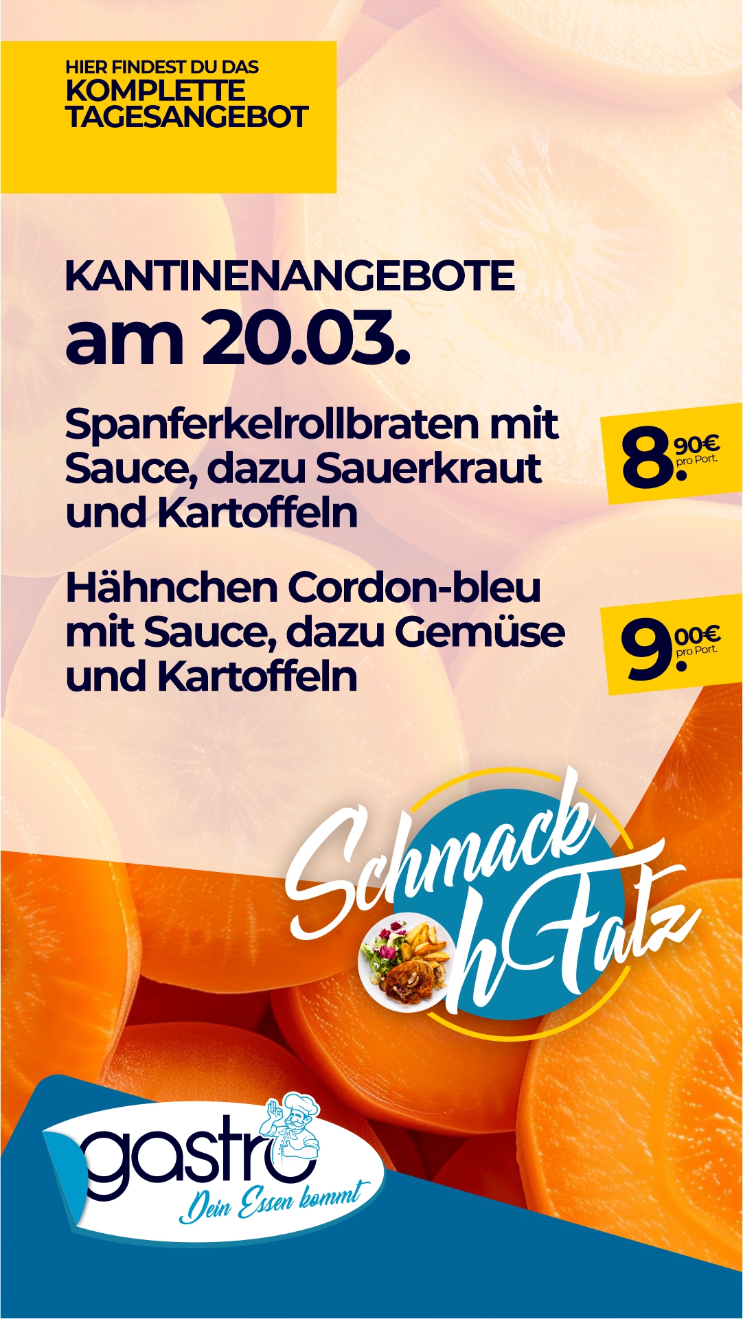Hier sehen Sie unser aktuelles Mittagessen-Angebot für unsere Kantine in Leinefelde.