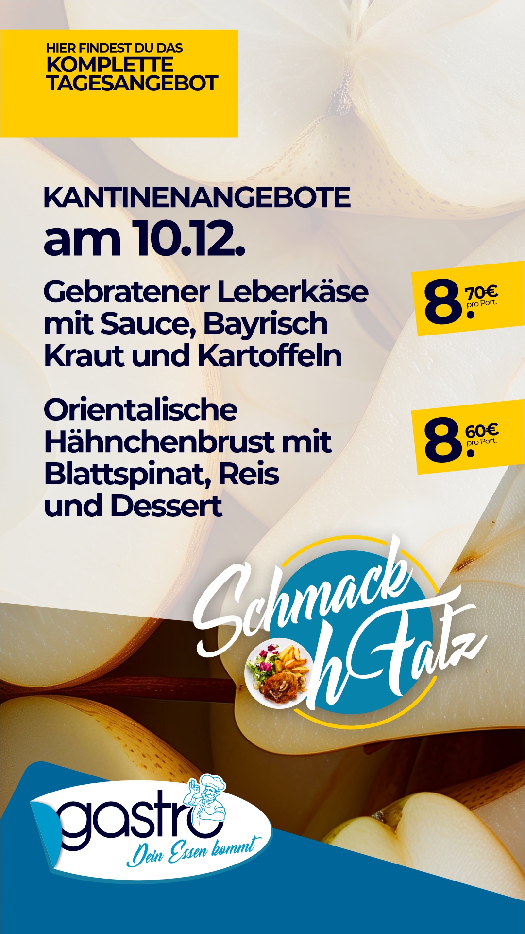 Hier sehen Sie unser aktuelles Mittagessen-Angebot für unsere Kantine in Leinefelde.